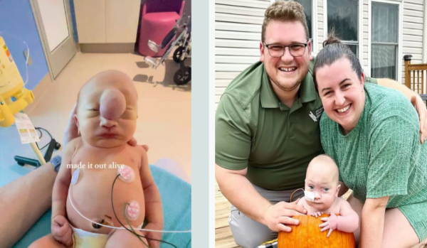 В марте 2023 года Лиам появился на свет на две недели раньше срока, с большим пузырем жидкости на лбу — его семья прозвала его “Squishy”. После 13 дней в отделении интенсивной терапии мальчика выписали домой.