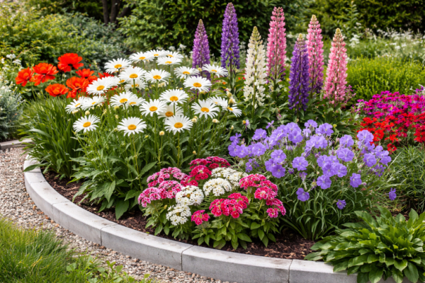 1. Нивяник (садовая ромашка). Сеют прямо в грунт с апреля — семена спокойно прорастают в прохладной земле. Быстро наращивает розетку и уже в первый сезон может дать цветение при раннем посеве. На одном месте растёт 4–5 лет, морозостойкость высокая, спокойно переносит зимы до −30 °C.