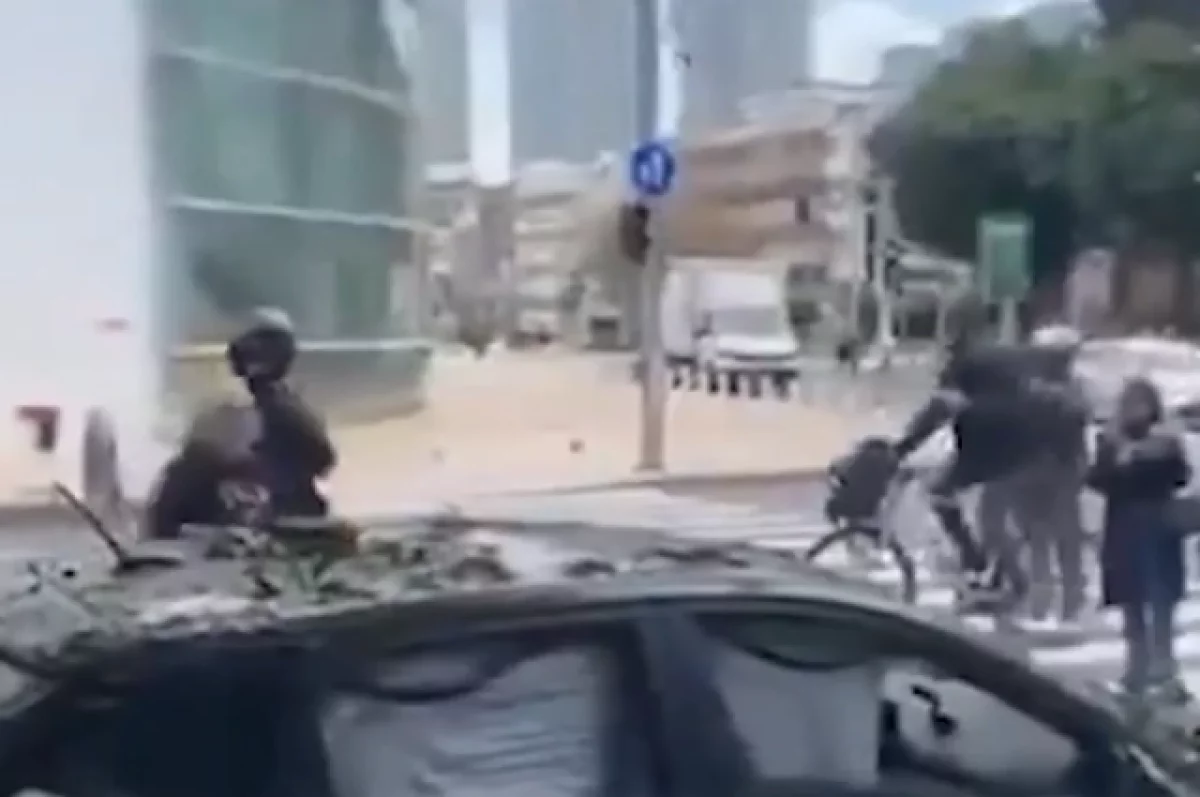 Появилось видео с последствиями запуска ракет в направлении Тель-Авива. На кадрах видно, как фрагменты боеприпасов падают на шоссе Аялон и одно из зданий.