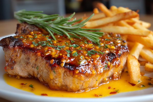 Свинина, маринованная в цитрусах, горчице и тимьяне, — это не просто мясо. Это сочная, ароматная история, мясо буквально тает во рту. Добавьте хрустящий картофель фри и нежный соус — и обычный ужин превращается в праздник.