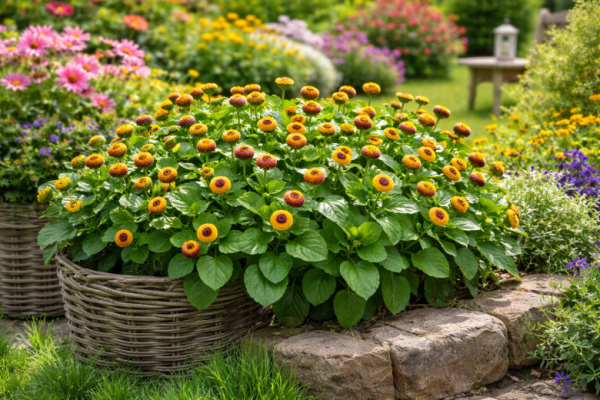 Если хочется чего-то действительно необычного для клумбы, обратите внимание на спилантес «Буллс Ай». Это компактное растение сразу притягивает взгляд яркими соцветиями — жёлтыми шариками с тёмной серединкой, похожими на маленькие глазки. Выглядит свежо, оригинально и совсем не банально.