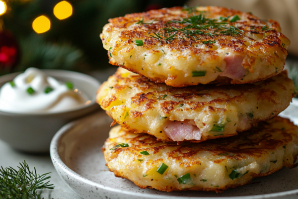 Получается обалденная вкуснятина: золотистые, пышные оладьи с хрустящей корочкой, а внутри — нежный мякиш с расплавленным сыром, кусочками ветчины и ароматом зелени, которые буквально тают во рту.