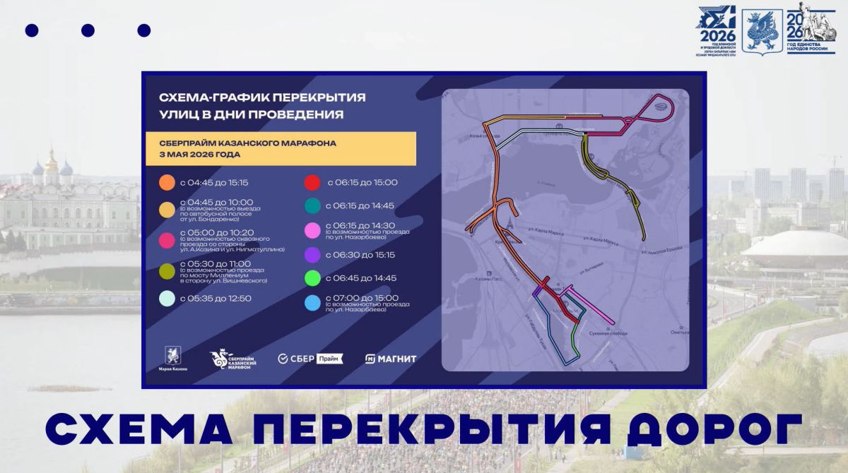 Маршрут пройдёт по знаковым местам города, включая Мост Миллениум, Казанский Кремль, башню Сююмбике, Центр семьи «Казан» и Старо-Татарскую слободу.
